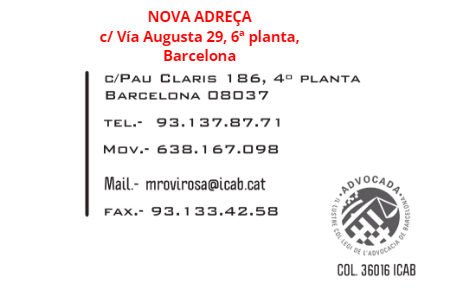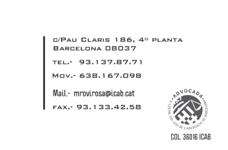 Per a l'exercici dels seus drets d'accés, rectificació, cancel·lació i oposició, vostè pot enviar sol·licitud adreçada a el següent correu electrònic: mrovirosa@icab.cat.